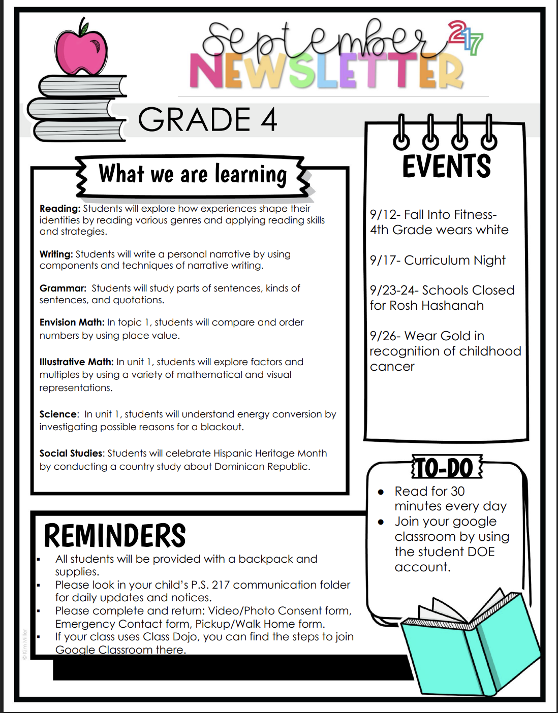 4th Grade September Newsletter
