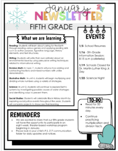 Fifth Grade Newsletters